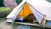 JR八高線「明覚駅」より車で約7分、里山や清流に囲まれた埼玉・ときがわ町のキャンプリゾート。敷地内には本格的な窯焚きサウナを併設しています。グランピングキャビンは、プロジェクター・シャワールームを完備し、テラスにはガスグリルが備わっています。グランピングテントは、川に面するロケーション。電源・Wi-Fiを完備し、タープで焚き火を楽しむこともできます。夕食は地元食材を盛り込んだBBQを、朝食ではベーグルやスペシャルティーコーヒーを用意。テントサイトでは、持ち込みのキャンプも可能です。