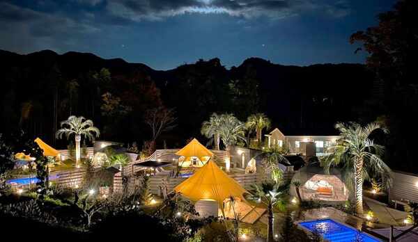 長瀞の豊かな自然に囲まれた約3万坪のキャンプ場の敷地内に佇むホテル。野趣あふれる貸切大露天風呂や、ステンドグラスを設えた貸切風呂を完備。温泉に浸かりながら、癒やしの時間を過ごすことができます。客室は、露天風呂付きのダブルルームや、アンティーク調のツインルーム、畳にベッドを配置した和室などを用意。秩父連山を望めるバルコニー付きの客室や、荒川に面した客室なども揃えています。食事は、朝・夕合わせて65~80種類の野や山の幸を使用した会席料理をいただくことができます。ホテルまでは、秩父鉄道「野上駅」より送迎サービスがあります。