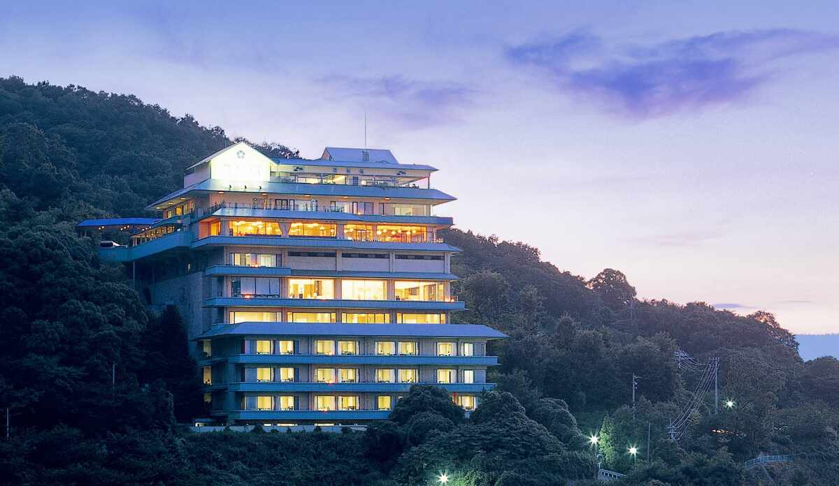 「峰山緑地公園」の東側に位置する、四季折々の樹木や草花に囲まれた「夕凪の湯 HOTEL 花樹海」。瀬戸内海と市内の景色を見渡せる展望パノラマ大浴場が魅力。満天の星を眺めながら温泉に浸かることができます。館内にはオープンキッチン・レストランがあり、讃岐の地物をメインとした滋味深い料理を味わえます。四季折々の風情を感じられる客室は、洋室や和洋室のほか、デザイナーズルームや温泉内湯付きの客室などを用意。温泉展望檜風呂を備えた広さ124㎡の客室では、窓の外に広がる瀬戸内の海や屋島、高松市街のパノラマを堪能することができます。旅館までは、JR「高松駅」より送迎バスを運行。敷地内には駐車場も完備しています。周辺には、「栗林公園」や「玉藻公園」などがあり、観光にも便利なロケーションです。