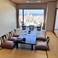 高松はホテルが多く旅館が少ないけれど、ここは市街地からも近く温泉を楽しめます。 昭和な旅館の雰囲気そのままの旅館 高台にあるので高松の街を一望。 大浴場は露天風呂はありませんでした。 お部屋の露天風呂はかなり広く家族で入