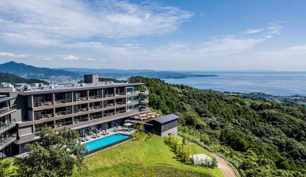 湯けむりが立ち上る別府の街並みや、別府湾を一望する景色が魅力のリゾートホテル。空と一体になるようなインフィニティプールを併設。檜や石造りの内湯に、別府石の露天風呂。家族風呂では明礬温泉に浸かることができます。客室は、竹細工や組子細工などの伝統工芸を随所に使用し、バスルームは大理石造りと和モダンな雰囲気。天井まである大きな窓からは、扇山や別府市街地を眺めることができます。館内のオールデイダイニングでは、地元の食材を使用した選べるメイン料理と前菜などのセミビュッフェを用意しています。