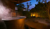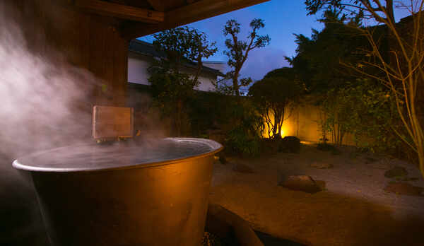 湯けむりが漂う鉄輪温泉に佇む、小さな老舗旅館。天然木を使用した開放的な高天井の「天木の湯」や、情緒を感じる扇形の湯船を備えた「扇の湯」、夜空を眺めながら入浴できる総檜造りの「露天風呂」の3つの貸切風呂を併設。プライベートな空間で鉄輪温泉の湯に浸かりながら、くつろぎの時間を過ごすことができます。食事は、豊後の新鮮な野菜や海の幸をふんだんに使用した郷土会席です。地獄の噴気を利用して素材の旨味を閉じ込めた「地獄蒸し料理」や、「おおいた和牛」のサーロインステーキなどを味わうことができます。それぞれ趣の異なる客室は、木や畳のぬくもりに包まれる全8室の和室を用意。館内には、共用の地獄蒸し釜をはじめ、長期滞在に便利な自炊室や洗濯機などを設置しています。