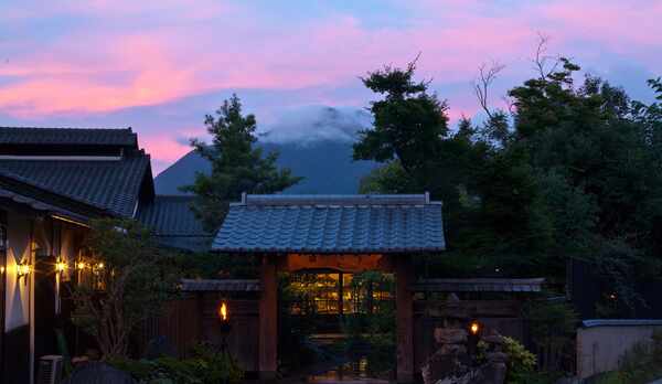 由布院の豊かな自然に囲まれた温泉が自慢の旅館。開放感のある温泉露天風呂や貸切可能な家族風呂を併設。雄大な由布岳を眺めながらトロトロとした湯触りの由布院温泉に浸かることができます。客室は、野趣あふれる岩露天風呂付きの和室や、窓の外に田園風景が広がる眺望が魅力の二間続きの和室、檜造りの半露天風呂を備えた和洋室などを用意。夕食は、近海で水揚げされた魚介や豊かな自然に育まれた豊後牛など、旬の地元食材を使用した創作懐石料理を味わえます。朝食は、郷土料理「だんご汁」をはじめ、焼き魚や揚げだし豆腐などが並ぶ和定食です。旅館までは、湯布院ICより車で約2分です。