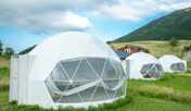 別府の自然を大パノラマで楽しめるロケーションが魅力のグランピングリゾート。約25万㎡の敷地内には、6つのコンセプトを持つ北欧テイストのドーム型テントを用意。夕食は、客室に併設する全天候型の専用BBQスペースで、九州の食材を使ったBBQを、朝食はベーカリーのパンや採れたての卵などをピクニックバスケットに詰めて、お好みのロケーションでいただくことができます。ドローンの操縦や空撮ができる体験も。多彩なスタイルに応じて選べるキャンプサイトもあります。敷地内には、展望サウナやカフェも併設しています。