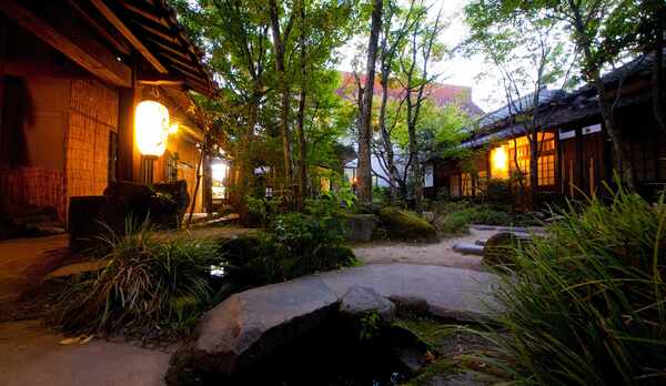 「金鱗湖」まで徒歩約3分、湯布院の中心部に佇む旅館。樹齢約千数百年のムクの木の根元から湧き出る温泉に浸かることができます。晴れた日には由布岳を眺められる露天風呂や、檜造りなど趣の異なる5種類の貸切風呂を完備しています。客室は、ツインの洋室や和洋室、2間続きの和室などを用意。囲炉裏を設えた半露天風呂付きの離れもあります。夕食は、牛ステーキや地鶏鍋、海鮮鍋などがメインの創作料理や会席料理です。風情ある中庭も併設。土産物屋などが立ち並ぶ「湯の坪街道」まで徒歩約5分。JR由布院駅から車で約5分です。