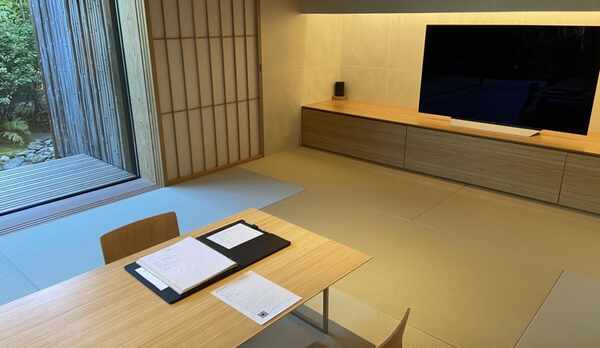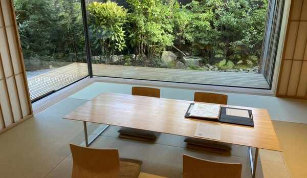 日本を代表する建築家の隈研吾氏が手掛けた1棟貸しの宿泊施設。敷地内には現代美術館があり、モダンアートと自然の調和を楽しめます。客室棟は、土壁でしつらえた「TSUCHI」と、竹壁でしつらえた「TAKE」の2棟を用意。随所に和の趣を感じるデザインが織り込まれています。室内で楽しむ温泉風呂も魅力の1つ。「TSUCHI」には御影石張りの床とヒノキの天井に包まれる内湯を、「TAKE」には岩造りの露天風呂を完備しています。大きな窓が付いた開放感あふれる居間では、わびさびを感じる庭を眺めながらくつろぎの時間を過ごすことができます。