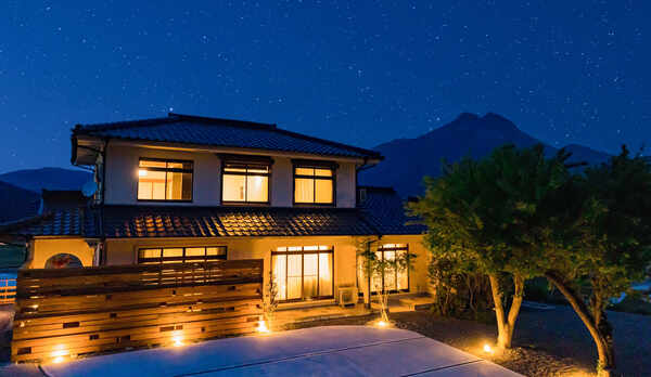 由布院の観光地エリアほぼ中心部にある温泉付き一軒家タイプのヴィラ。一日1組限定のぜいたくな時間を過ごすことができます。はなれには露天風呂と内湯を完備しており、手足を伸ばして温泉に浸かることができます。キッチンには、調理器具や食器などを完備。リビングには、広々とした庭には屋根付きのBBQスペースもあり、天候に左右されず楽しむことができます。周辺には飲食店も充実しています。
