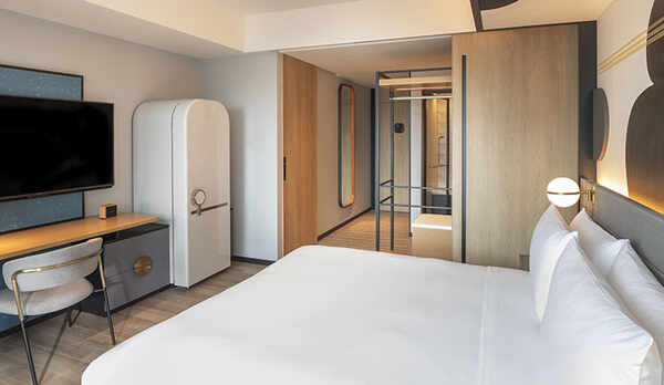 JR大阪駅直結、複合商業施設「グランフロント大阪」内に位置するラグジュアリーホテル。スタイリッシュな空間に、和色を配した落ち着いた雰囲気の客室は、広さ57㎡にキングサイズのベッドや大理石のバスルームを備えた客室、シティビューのアパートメントタイプの客室などさまざま。食事は、旬の食材を使用したフレンチレストランや、オープンキッチンで調理するロースト・グリル料理ダイニングにて、多彩なメニューをいただくことができます。館内には、スパやジム、プール、大浴場を併設しています。