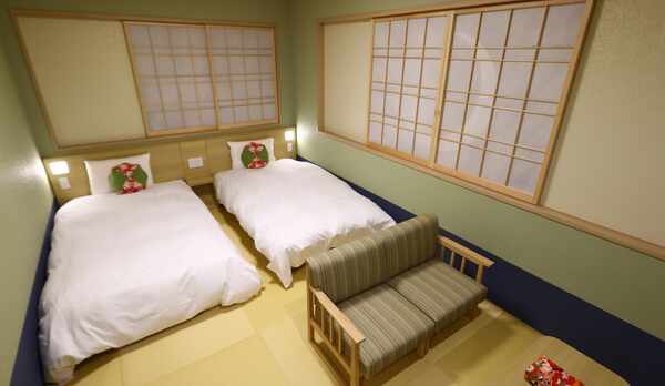 全て畳で靴下のまま移動できる心地良さ。 裸足が嫌な人は足袋の靴下もあります。 部屋は広めで和の空間が落ち着く。 布団でなく、低めのマットレスも居心地がいい。 そして最上階にあるお風呂が素晴らしい。 露天風呂も素晴らしいし、サウナが熱い!そして水風呂はキンキン! 露天風呂の空きスペースにととのい椅子あり。そこで外気浴。 お風呂最高!のテンションそのままにアイスもいただけて夜泣きそばも楽しめる。 夜泣きそばを頂きながらジュース、コーヒーもいただける。 新しく人気の漫画もあり、1日こもるくらいホテル生活楽しめるホテル。