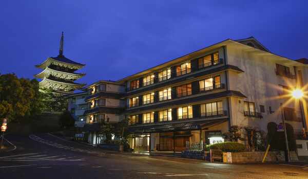 「興福寺五重塔」を望む、旬の食材にこだわった会席料理が魅力の料亭旅館。夕食は、黒毛和牛や季節のものを取り入れた月替わりの本格和会席を客室で味わうことができます。朝食は、奈良の伝統食「茶粥」や出来立ての出汁巻き卵などの和食を用意。館内には、古都の風情ある街並みを眺められる展望露天風呂や御影石の大浴場、気兼ねなく入浴できる貸切露天風呂を完備しています。客室は、和室や和モダンツイン、五重塔側の客室などさまざま。近鉄奈良駅より徒歩約8分、「奈良公園」まで徒歩約5分です。