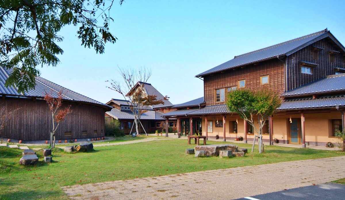 日本海と宇川の景色を楽しむ「海の温泉」と、美しい竹林を眺めることができる「山の温泉」が魅力。「海の温泉」には、刻々と表情を変える丹後の海を一望できる露天風呂や内湯などを完備。「山の温泉」では、小鳥のさえずりが聞こえてくる森林の湯を堪能できます。コテージ風の宿泊棟には、メゾネットルームや和空間ルーム、ツインルームなどを用意。自室のテラスではBBQを楽しむこともできます。敷地内には海の見えるレストランなどを併設。コース料理などをいただくことができます。自然豊かなキャンプ場も併設しています。