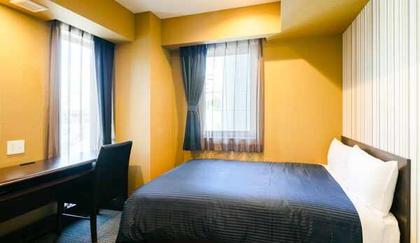 地下鉄「勾当台公園駅」南3番出口より徒歩約10分、繁華街である国分町の中心部に位置するホテル。アールデコ調のデザインをベースにした客室は、シンプルながらも機能性と快適性にこだわったくつろぎの空間。シングルやダブル、ツインなどを揃えています。室内には、テレビや湯沸しポット、冷蔵庫などを設置。全室でWi-Fiを利用することができます。朝食はバイキングです。館内には、男性専用の大浴場やサウナを併設しており、リフレッシュする時間を過ごすことができます。長期滞在にも便利なコインランドリーも完備しています。