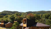 約1万坪の自然林の中に佇む、季節の移ろいを感じる離れで癒やしの時間を過ごすことができます。自然の中に溶け込むような離れの客室は、金山杉でしつらえた吹き抜け天井の開放的な空間。露天風呂付きテラスを備えた客室や高床式の客室などさまざまです。遠刈田温泉に浸かれる半露天風呂や趣の異なる貸切露天風呂を完備。木立のざわめきや渓流のせせらぎ、満天の星などを眺めながら湯浴みができます。夕食は旬の食材を使用した里山料理を、朝食は手作り豆腐などの和食膳と採れたての野菜のビュッフェをいただくことができます。