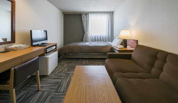 JR「徳山駅」より徒歩約3分の好立地なホテル。開放的な大浴場を完備し、徳山の街並みを眺めながら入浴することができます。客室は、約140cm幅のベッドを配したシングルやセミダブルのほか、ツインなどを用意。全室でWi-Fiを利用することができます。客室内には、加湿機能付き空気清浄機を設置。夕食は、ホテルオリジナルの上田カリーや、自慢のうどんメニューなどを味わえます。朝食は、日替わりのヨーロピアンブレッドを中心に、約30種類以上のメニューが並ぶバイキングです。館内には、長期滞在にも便利なコインランドリーを設置しています。
