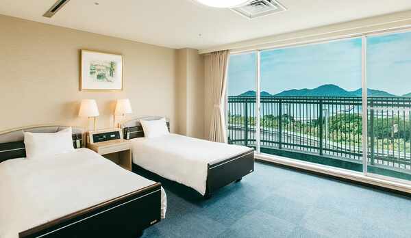 すべての客室から、瀬戸内海に沈む夕陽を一望することができる旅館。大きな窓が特徴の客室は、和室やツインの洋室、畳にベッドを配した客室などがあります。光室積温泉を引湯した展望風呂からは、名勝「象鼻ヶ岬」を見下ろすことができます。夕食は、鱧やふぐなど旬の魚介類のお造りをはじめとした季節の会席料理を、朝食はビュッフェなどを用意。館内には、宴会場や会議室を併設。光市内には、「冠山総合公園」や「光ふるさと郷土館」、「普賢寺」などの観光スポットも充実しています。