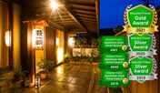 美しい夕景を望むロケーションに佇む旅館。すべての客室が川、または運河に面しており、茜色に染まる萩の街並みや港の幻想的な風景を楽しむことができます。全室に半露天風呂とテラスを完備しています。夕食は、日本海の幸や旬の地元食材をふんだんに使用した月替わりの献立や長州和牛を味わえる会席料理などを用意。木のぬくもりあふれるロビーやパブリックスペースには、アンティークなステンドグラスや照明をしつらえています。ライトアップも楽しめる中庭や夕景を望むテラス、はぎ温泉につかることができる内湯や露天風呂なども魅力です。