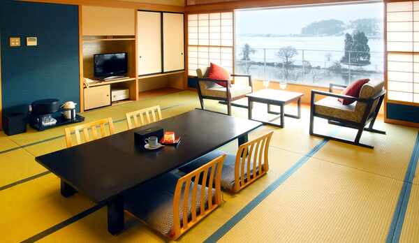 最上川を一望する雄大な自然に囲まれたリゾートホテル。館内には、蔵王連峰を望む大浴場や四季折々の景色を楽しめる庭園露天風呂、趣の異なる3タイプの貸切風呂を併設。湯量豊富な新寒河江温泉の湯を堪能することができます。全室リバービューの客室は、和室から和洋室、コンセプトルームまで、バラエティー豊かなタイプを揃えています。寒河江の原風景を一望できる30畳の広々とした和室「別邸 出羽三山」もあります。夕食は、「山形牛」や「米の娘豚」のしゃぶしゃぶやすき焼きなどをメインに、山形・寒河江ならではの味覚を楽しめるコース料理を用意。朝食は、山形芋煮や食用菊などの郷土料理のほか、さまざまな和洋メニューを、バイキングまたはお膳でいただくことができます。ホテルまでは、寒河江スマートICから車で約1分、JR「寒河江駅」から車で約10分のロケーションです。