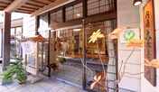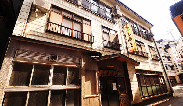 新庄からの村営バスが肘折温泉街に入った最初のバス停のすぐ先の通りに面した湯治旅館。隣接する三浦屋旅館や道向かいの饅頭屋が並んだ風景は肘折温泉の写真によく出てくる。4月から11月にかけての名物朝市もこの通りで開かれる。 建物は古い和風3階建で、3階のこじんまりした和室から通りを見下ろせた。館内はレトロムードが漂い、静かにジャズが流れて良い雰囲気。湯治宿なのでスタッフとの接触はチェックイン・アウトの時と朝夕の食事が運ばれてくると時くらいで、あとはマイペースでゆっくり過ごせる。コミック本も多数揃っている。 食事は部屋食で標準コースは家の食事を二回り豪華にしたレベルで胃袋に負担がかからない程度。お酒は近くの商店で買って持ち込めるのでお得。 お風呂は3階と1階の2か所で異なる源泉を使用している。何れもナトリウム塩化物・炭酸水素塩温泉の源泉かけ流しでやや熱めなのは肘折温泉の特徴らしい。冬の寒い時期にはこの熱めの温泉が沁みて心地いい。共同浴場「上の湯」の利用券を無料でもらえる。