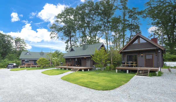 東京から約2時間の八ケ岳の麓、小淵沢にあるロッジ&コテージ。南アルプスを一望できるロッジはB&Bホテルスタイルの全6室を用意。客室内は、広々としたバスをはじめ、洗面やトイレ、冷蔵庫などを備えており、快適に過ごすことができます。大井ヶ森に佇むコテージは、一棟貸しのプライベート空間です。リビングダイニングや、調理器具を備えたキッチンなどの設備も充実。南アルプスの景色を眺めながら心安らぐひとときを過ごせます。また、どちらもデッキスペースを併設し、BBQを楽しむこともできます。ロッジは、JR「小淵沢駅」や中央自動車道「小淵沢IC」から車で約7分、コテージは車で約14分のロケーション。周辺には、多彩な飲食店が点在し、温泉施設や工場見学、乗馬体験などができるスポットもあります。