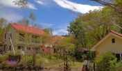 富士北麓に点在する富士五湖、「山中湖」の近くに建つペンション。標高約1,000mの高原から富士山をすそ野まで見渡せる立地です。館内には、檜と岩の2つ温泉露天風呂を完備しており、貸し切りで利用することができます。客室は、ツインやダブル、和洋室などを用意。ダイニングルームやカフェを併設しており、地元山梨の厳選された地ワインを味わうことができます。