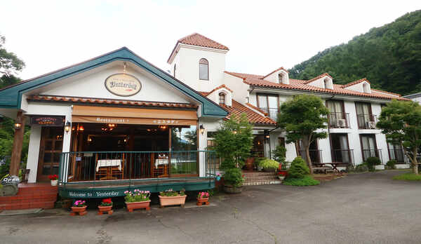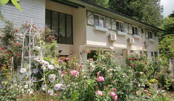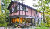 河口湖の森の中にひっそりと佇むペンション。木漏れ日に包まれたイングリッシュガーデンが出迎えてくれます。夕食は、甲斐サーモンや甲州ワインビーフなど新鮮な地元食材を使用したコース料理を用意。オーナー手作りのケーキを味わうこともできます。朝食は、和・洋から選べるモーニングセットです。クラシカルな雰囲気のダイニングは、四季折々の森を眺められるくつろぎの空間。自然豊かな庭でバーベキューを楽しむこともできます。館内には、貸し切りのパブリックバスや、本に囲まれた談話室も併設。客室は、セミダブル・ツイン・トリプルを揃えています。