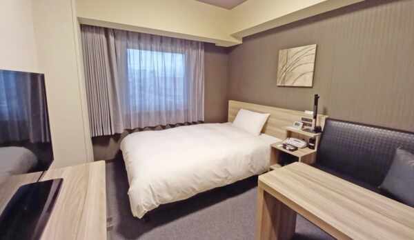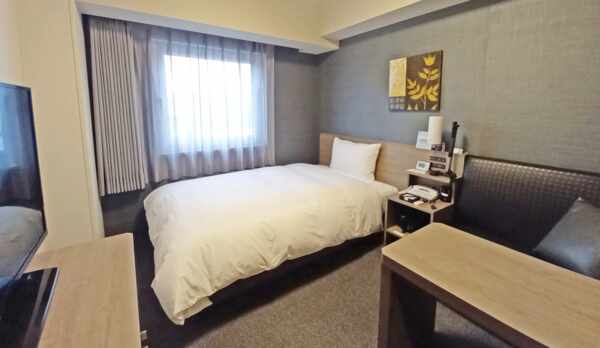 ソファーベッドのセルフメイクは意外と簡単にできました。二人でのツイン利用なので、部屋はやや狭く感じました。ワークデスクは広いので、小物を置けたりパソコン作業も快適そのもの。サービス面がとても充実しています。親切なスタッフさんが使い方を教えてくれた無料のかき氷やコーヒーが備え付けてあり、清酒などのドリンクは¥300で。ブッフェ式の朝食は、ビジネスホテルにありがちなメニューだけでなく、美味しい焼きそば・カレー・ホッケ?の焼き魚もあって満足できました。コスパはかなり高かったです。