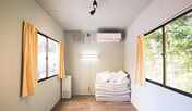 すべての窓から「額縁に入った富士山」を望むことができる、一棟貸しのホテル。別荘のようにくつろぎの時間を過ごせます。室内は、スタイリッシュでモダンな空間。2室ある寝室には、それぞれフランスベッド製や日本ベッド製のマットレスを採用しています。窓枠の中に見える富士山が、まるで「銭湯壁画の富士山」のようなバスルームを完備。バスルームは、フィンランド直輸入のトレーラーサウナと直結しています。キッチンの冷蔵庫には、下準備済みの食材を用意。動線の中心にあるオープンリビングでは、富士山を眺めながら読書などを楽しめます。