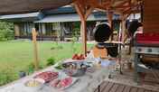 おしゃれにリノベーションされた一棟貸の古民家です。 広いお庭を眺めながら縁側で過ごす時間。ここでしか味わえない至極のひとときです。 BBQエリアも整備されており、希望時間を伝えておくとオーナーさんが火を準備してくれます。(BBQの資格?!を持っているとかで、BBQ設備もかなり本格的です!!) 家の中でゆっくり過ごすもよし。庭でゆっくり過ごすもよし。他を気にせずゆっくりできるのは、一棟貸ならではです。 宿のお風呂が檜風呂なのも魅力です。 周りは民家で、とても静かです。 私が行った日はあいにくの曇りでしたが、晴れていたらきっと星空がきれいだと思います。 1泊で帰るのが残念だったので、今度はぜひ連泊で行きたいなあと思います。