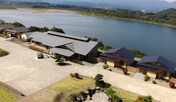 御所湖のほとりにある湖と山の眺望が美しい大規模なホテルです。夜、ロビーでさんさ踊りのパフォーマンスが30分程度行われており、近辺の系列ホテルからもバスでお客さんが来て盛況でした。和室に宿泊しましたが、いわゆるせんべい布団で少し寝辛かったのはいただけなかったです。