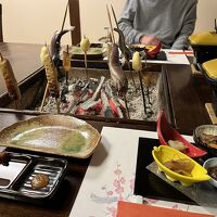 里山の雰囲気を楽しみながら、良質の温泉につかって、周りの山で朝採りされた山菜を中心とした食事を堪能しました。 囲炉裏で炭火焼きしたイワナやお団子をいただけるのですが、椅子席なので、とても楽でした。食事の量は荘年の男子でも食べきれないほどでした。 7月には「蛍と星空観察会」体験付きのプランなどもあり、家族連れにもおすすめ。 歩いていたら絶滅危惧種の珍しい蛾を見かけたり、とにかく自然が楽しめます。 部屋は150年前の建築の技を身近に感じられる和室で、窓の外には茅葺屋根が見えて、それなのに窓はサッシがはいっているので、隙間風もなく、快適でした。 全部で4室しかないので、早めの予約が必要です。