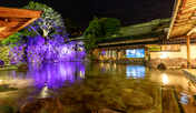 明治元年創業、約120坪と日本屈指の広さを持つ混浴大露天風呂が自慢の旅館。庭園の緑に囲まれた日本情緒あふれる空間で、玉造温泉の湯に浸かることができます。男女別の大浴場と露天風呂も完備。敷地内には、およそ1万坪の回遊式庭園が広がっており、四季折々の庭を眺めながら癒しの時間を過ごすことができます。客室は、和室やバーカウンターを配した和モダンな客室、専用風呂付きの離れなどさまざまです。庭園や温泉街を望む客室も。夕食は、旬の地元食材を取り入れた季節の和会席を味わうことができます。