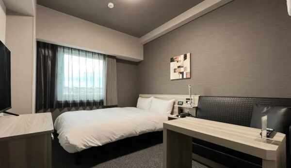 トリプルルームと駐車場無料と検索しこちらのホテルを選択。トリプルルームがあるビジネスホテルは少なく、あっても1つはソファベッドになることが多いのですが、今回の部屋はダブルベッド1つとシングルベッド2つの部屋でした。湯呑みやコップなどは4つあったので定員4名の部屋なのかもしれません。ホテルの写真で見ても広そうな部屋でしたが部屋の奥にダブルベッド、手前にシングルベッド2台、中央にソファーとテーブル、メイクができるテーブルと壁付き鏡、足が伸ばせる浴槽、一人暮らし用の冷蔵庫、横幅1メートル以上のクローゼットなど完備されていてとても過ごしやすい部屋でした。残念なポイントとしてはバストイレが同じなことと、ダブルベッド側の壁にテレビがあってソファーからは遠くて見づらかったことですね。建物は外観も内装も昭和レトロな雰囲気で古めでしたが清掃が行き届いて綺麗で毎日清掃にも入ってもらえて良かったです。
