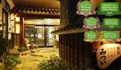 大正ロマンの雰囲気漂う照明や調度品を配した空間でくつろぎの時間を過ごすことができます。目の前に渓流が流れる民芸調のロビーが出迎えてくれます。庭園露天風呂や開放的な内風呂、ノスタルジーを感じるひのき風呂を完備。宇連川を眺めながら湯谷温泉に浸かることができます。夕食は、こだわりの地元の食材を使用した会席料理をいただくことができます。客室は和室と、総ひのき造りの茶室付き客室を用意。新城ICより車で約15分、国の名勝天然記念物に指定された鳳来寺山や「鳳来寺」などへの観光拠点に便利です。