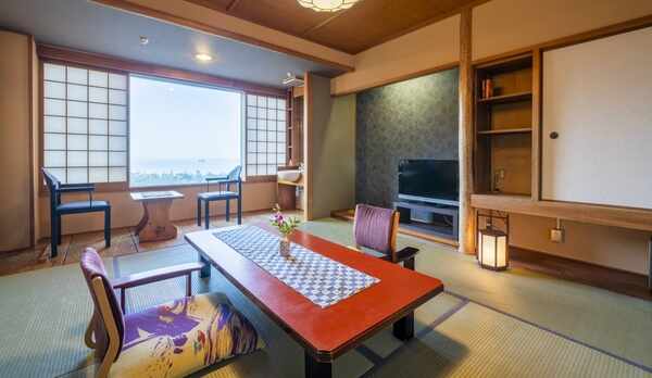 三谷温泉にある、展望が自慢のお宿 ちょうど弘法山の中ほどに建ち、広々とした三河湾眺める展望露天風呂楽しめます 新鮮な海の幸使用したお料理も美味 焼き魚と天ぷらは作り立てをサーブ 量も多く、三河湾の味、だしのきいた甘み感じるテイストでいただきました お部屋は山側のコンパクトな6畳の間 ウォシュレットなしのユニットバスタイプ やや狭さ感じますが、夫婦2人ならさほど苦にならない程度の広さ テレビは小さめサイズの薄型テレビですが、ほとんど見ないので気にならず 眺めや広さ、設備にこだわりなければリーズナブルに宿泊できます インターネットは繋がり良く、安定した速さで問題なし お風呂は1階と2階に分かれていて、1階の大浴場はロココ調の大理石のお風呂とサウナ、2階の露天風呂は数寄屋造りで海側が浅めの寝湯タイプになっています ナトリウムイオンの塩化物泉で、浸透性が良く、湯上りに冷めにくいのが特徴 ウェルカムドリンクと抹茶ムースもあり、かなり昭和チックなレトロ感感じるお宿でしたが、思った以上に三河湾の味覚と温泉感じるお宿でもありました 海鮮好き&温泉好きな方にはうれしい純和風旅館です