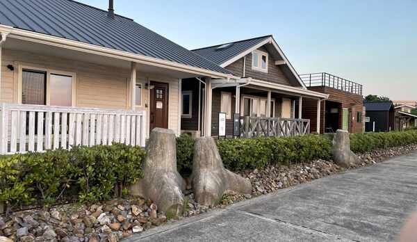 すごくかわいいお家が並んでいます。中も外もおしゃれで家づくりの参考にもなります。ちょっとリゾート感がある場所なので景色も良いです。観覧車も見えます。海の目の前なのもポイント高いです。同じ敷地にワッフルのおいしいお店があります。