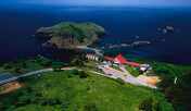 佐渡の最北端にある二階建てのロッジ風ホテルです。全客室オーシャンビューです。 裏側には二ツ亀に行く通路が有り、真下は【日本の快水」浴場100】に選ばれている二ツ亀海水浴場があります。途中にはかなり広い二ツ亀キャンプ場もあります。 夏のシーズンのホテル予約は早めが必要とのことです。 ホテルの外観はなかなか良い感じですが、近づいてみるとちょっと年季が入っている感じを受けました。 しかし客室は綺麗で、二ツ亀が正面に見え、眺望もよく快適でした。 夏季の天気が良い日には海に沈む夕日を客室から見えるようです。 残念ながら宿泊した11月の夕日は二ツ亀岩の左方面に落ちるため見ることができませんでしたが、それでも「絶景」でした。