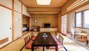 佐渡の文化に触れることができる旅館。「佐渡おけさ」の鑑賞会や美術工芸品の展示室があり、随所に佐渡ゆかりの美術作品が飾られています。夕食は名物の「烏賊墨釜飯」など、地元の山海の幸を使用した会席料理を用意しており、佐渡の食文化を堪能することができます。朝食は、炊きたてのコシヒカリと飛魚出汁の「海藻しゃぶしゃぶ」などを味わう和食をいただけます。客室は、和室・和洋室などを用意。日本海側と町側を揃えており、たらい舟形露天風呂付きの客室などもあります。大浴場には、広々とした内風呂と眼前に海が広がる温泉露天風呂を完備しています。