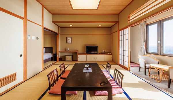 佐渡島の景勝地である「相川春日崎」に佇むホテル。サウナ付きの大浴場や開放感のある露天風呂を完備。海に沈む夕陽や漁火、相川の夜景など、刻々と表情を変える景色を眺めながら、春日崎温泉の湯につかることができます。全室オーシャンビューの客室は和モダンな雰囲気。和室やツインなどを用意しています。木の香りに包まれる檜造りの浴室を備えた客室や、温泉露天風呂付きの広々とした客室も揃えています。夕食は、佐渡の新鮮な魚介類や旬の野菜など、佐渡の山海の幸をふんだんに使用した会席料理を味わえます。朝食は、和食膳、またはビュッフェです。館内には、日本海まで水面が続くように配置された「水のテラス」を併設しています。