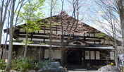 玄関を入ってまず、その展示に圧倒されます。オーナー特注の東海道五十三次を描いた有田焼のお皿が壁いっぱいに展示され、目を移すと奥にも別のシリーズが。さらに2階にも昔話をモチーフにしたお皿の展示がありますが、これだけのものをそろえる旅館は他に見たことがありません。興味のある方はぜひ一度宿泊を。我々が宿泊した部屋も、これまたお目にかかったことのあまりない造り。入り口を開けると、小さな空間に屋根のついた別の入り口があり、その向こうが部屋。襖は布張りでかなり年季が入っている感じ。おそらくオーナーは茶系がお好みで、部屋全体的に茶色がかっているのですが、個人的にはちょっと暗い印象を受けました。窓からは一面の田園風景。これはこれで落ち着きます。食事は朝夕ともに部屋でいただきます。なじみののっぺの他、初めていただく杉板焼きなど、心のこもった品々は美味しかったです。温泉は男女別の内湯と、交替制の露天風呂。場所柄、展望はありませんが、ほどほどの広さで、ゆっくり入浴できました。