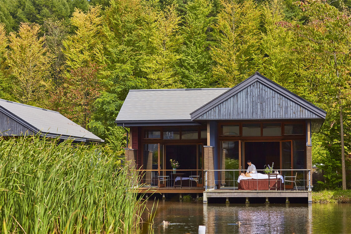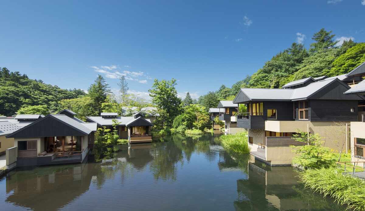 木々と水に囲まれた集落のような設計が魅力の「星のや軽井沢」。無駄な光や家電は一切なし。人に邪魔されない大自然の中で、川のせせらぎを聞きながらくつろぐも良し、やわらかな光に包まれた温泉で瞑想するも良し。客室は、「水波」「山路地」「庭路地」とそれぞれが地形に沿ってつくられており、自然をより近くに感じながら滞在することができます。食事は、川魚やジビエ、季節の野菜を活かした美食・日本料理を堪能。心と体をととのえる休息の森でのスパや、季節に応じたアクティビティも充実しています。