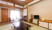 南信州を代表する温泉郷、昼神温泉郷に建つ「鶴巻荘」。洗い場一面に柔らかな畳が敷かれている「お座敷風呂」が特徴的な旅館です。宿泊者は旅館から徒歩約1分の姉妹施設の温泉も利用可能です。客室は約5名まで宿泊可能な和室をメインに、バリアフリー対応のツインルームや温泉付きの特別洋室などの用意もあり、さまざまなニーズに対応しています。食事は、館内の食事処にて伝統野菜や阿智村の食材をふんだんに使用した郷土料理を味わうことができます。