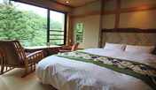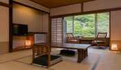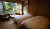 自然豊かな山の中に佇む旅館。館内まで自家用ケーブルカーで移動します。伊香保温泉には、棒名山を眺めることができる露天風呂、貸切の露天風呂や内湯で浸かることができます。客室は、本館にある純和風の和室やダブルベッドを配した客室、南館の露天風呂付き客室などを用意。眺望の良い別邸にある、趣の異なる9室の露天風呂付き客室も魅力です。夕食は、地元の旬の食材をふんだんに使用した会席料理です。伊香保温泉のメインストリート「石段街」まで徒歩約5分、「河鹿橋」まで徒歩約7分です。