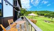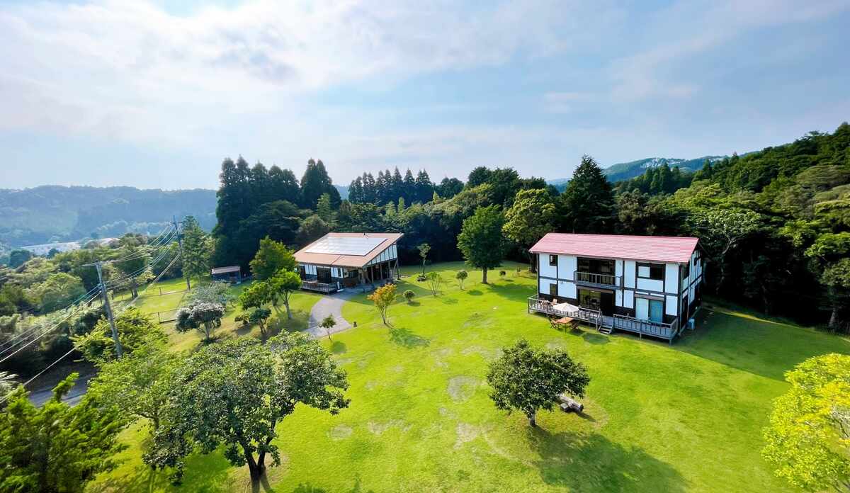 千葉県勝浦市の自然の中に佇む、静かな場所に位置する一棟貸し切りの貸別荘。施設内は全面天然芝で、四季折々の木々に囲まれ豊かな自然に包まれています。客室棟は「ドギーハウス」と「ホビーハウス」の2棟を用意。「ドギーハウス」は約500坪の敷地に、国産木材のみで建築した愛犬と同伴可能な客室があり、専用のドックランを完備。寝室からドッグランを見渡すことができます。「ホビーハウス」は約800坪の敷地に、広々とした天然芝フリースペースを併設。また、建物内には30畳のフリースペースがあり、室内ブランコやハンモックを完備しています。家族や友人、わんちゃん連れの方も、都会の喧騒から離れたプライベート空間で、バーベキューなどを楽しみながら心安らぐひとときを過ごすことができます。