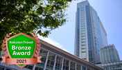 東京メトロ銀座線「外苑前駅」より徒歩約2分、表参道にも程近い洗練された街に建つ「東急ステイ青山プレミア」。全客室に洗濯乾燥機や電子レンジを完備し、ミニキッチン付きの客室にはIHヒーターを設置するなど、中・長期滞在者に便利な設備が整っています。LANケーブルや携帯充電器、アイロンなど滞在をサポートする備品も充実。建物の1階と2階には、レストランやカフェが出店する複合施設を併設。朝食は2階「モンテ アスル」で提供しています。「青山霊園」まで徒歩約4分。草木が生い茂り、憩いの空間になっています。
