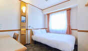 金曜日に宿泊しました。 大人二人に子供二人でしたので、ツインにしました。 変わった部屋の間取りで真ん中にトイレと風呂があり、両端にそれぞれベッドがおいていました。 少し気持ち狭いかなと思いましたが、寝るだけなら問題ないです。 また朝食が無料でついてきますが、おかずの種類も多くとても満足です。 とても無料のご飯と思えないです。 ハムやひじきの煮物なども美味しかったです。