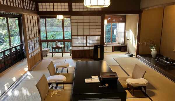 2度目の宿泊で、今回は本館の下から2番目のレベルの部屋にしました。 掃除が行き届いているので清潔ですが、建物の老朽化は否めません。 日常生活が洋風化している今、100%畳の生活はちょっと辛い。朝と夕飯は、椅子式の食事室でとることもできて助かりました。 旅館の食事は、器も料理も季節が盛り込まれていて、とても美味しいです。 部屋や廊下に飾られている絵画も見事です。 京都の真ん中で、非日常の空間で、2食付きでひとり5万程度ならコスパいいと思います。ラグジュアリーなホテルだと部屋代だけでそのくらいかそれ以上しますから。 少しでも快適に過ごしたければ1泊ひとり9万程度になりますが、新館をお勧めします。新館は部屋の意匠が凝っていて、それも見ものです。