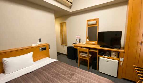 東北自動車道佐野藤岡インターから車で5分です。 部屋はシングルだったので細長くてちょっと狭かったです。 通常はべッドは入り口に対して横向きが多いのですが、こちらではバスルーム側に頭元がありました。 バスルームもありますが、大浴場があるのでそちらに行きました。 朝食は6時半から9時までで無料です。 種類は多くてハムやベーコン、焼いた鮭、玉子焼き、焼きそばなどがありました。 サラダも葉っぱをたくさん食べられました。 毎日1品おすすめ料理があり、おでん屋、ミネストローネなどの予定が書いてありました。