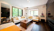 那須高原の自然に囲まれたリゾートヴィラ。室内は、木をふんだんに使用した内装にヴィンテージ家具を設えた温かみある空間。吹き抜け天井が開放的なリビングダイニングをはじめ、サータ製のベッドを配した寝室や、黒羽温泉の湯につかれる浴室などがあります。浴室は、開閉可能な大きなガラス窓を設置しており、半露天風呂としても利用可能。調理道具や食器類などを揃えたアイランドキッチンや、洗濯乾燥機などの設備も充実しています。敷地内には、渓谷越しに那須連山を一望できるテラスを併設。鳥のさえずりや心地よい風を感じながらBBQを楽しめます。