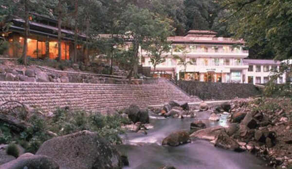 鹿股川や森の木々との一体感を味わえる川岸露天風呂に浸かることができる旅館。内風呂や貸切露天風呂なども完備しており、2種類のにごり湯を引湯しています。食事は、地場野菜や川魚など旬の地元食材をふんだんに使用し、伝統の味にこだわった会席料理などをいただくことができます。客室は、四季折々の自然や渓谷を眺められる和室や、ホテルに隣接する和洋折衷の歴史ある建物「太古館」に設けられた客室などを用意。館内には、宴会場や会議室、バーなども併設。首都圏から車でおよそ2時間半、駐車場も完備しています。