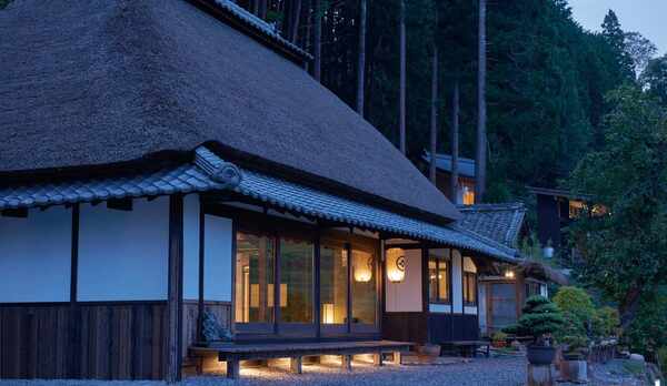 地図を見る雄大な自然に包まれた、一棟貸切の古民家に宿泊することができます。宿泊施設は「蔵王」と「小角」の2棟を用意。「蔵王」は、約200年前に建てられた茅葺き屋根の古民家を、伝統美を残しながらリノベーション。囲炉裏部屋からは、美しい棚田の農村原風景と国定公園の峰々を眺めることができます。「小角」は近代設備が整った新築茅葺き家屋。敷地内には約100年前の茶室と、3つの庭園があります。夕食は、和食や鍋料理、伊賀牛のしゃぶしゃぶなどをケータリングで味わうことができます。朝は、天然酵母パンやヨーグルトなどの軽食です。法螺貝吹奏や座禅、ヨガなどを楽しむことも。サイクリング用自転車やバイク、カヌーなどのレンタルも行っています。
